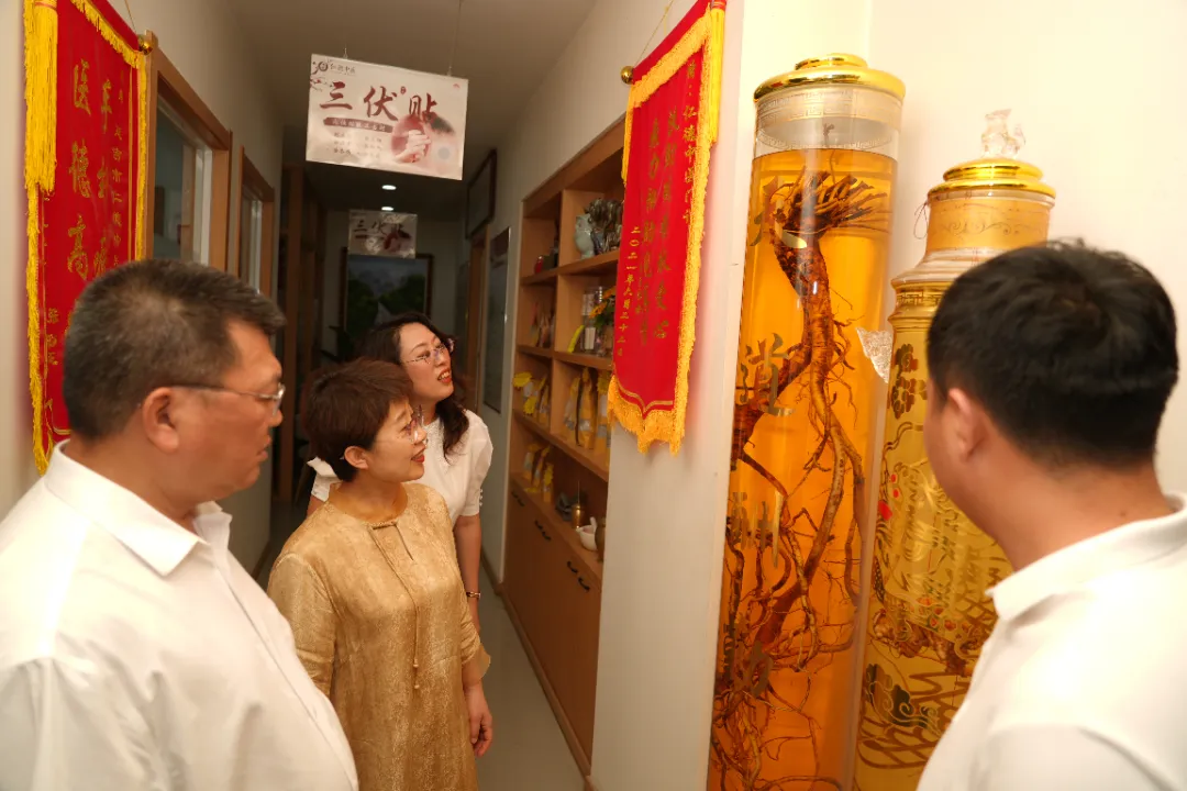 第六站,走进协会副会长单位、延吉市王麻子综合诊所,王照伟所长介绍了其五代传承的皮肤病诊疗经验、源自长白山的道地中药材和采用长白山第一氘水熬制中药的特色方法,调研组还现场查看了一位采用耳穴针灸疗法治疗的患者,该疗法用于治疗高血压、甲亢、失眠抑郁症、儿童注意力不集中等。