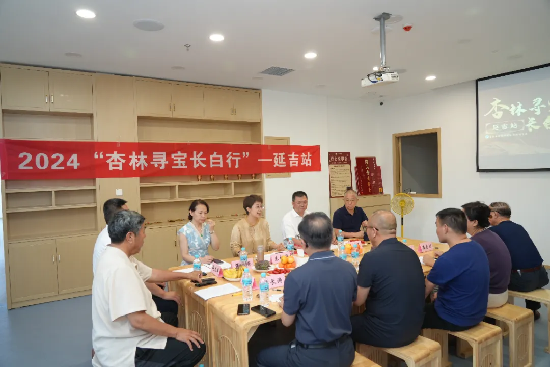 在“仁德中医紫荆苑馆”二楼会议室,召开了“杏林寻宝长白行—延吉站”调研活动座谈会。吉林省民营中医医疗机构协会会长单晓春、秘书长朱桂祯,延边州卫健委中医管理处原处长古怀明,吉林省中医药健康产业协会秘书长吴琼,民协会副秘书长韩玉海,副会长:延吉市仁德中医门诊董事长张贵香、延吉市静德中医诊所所长谭长涛;副会长单位代表:延吉市王麻子综合诊所所长王照伟;理事:延吉市传统君和中医综合诊所所长赵立军、延吉市孝真中医诊所所长李光哲;延吉市民营中医机构代表:延吉市孝真中医诊所法人崔凤花、第78代上清派法雍道医嫡弟子黄飞,延吉市北大医院、延吉市正骨医院院长崔宗河等共计15人参会。